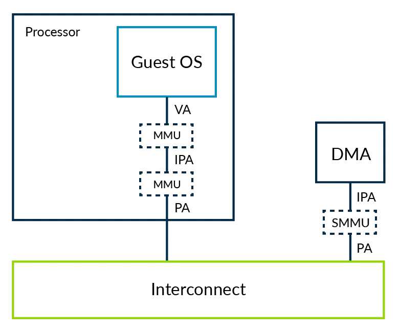 SMMU支持两个stage的翻译:stage1(IOVASMMU支持两个stage的翻译:stage1(IOVA-->IPA)和stage2(IPAIPA)和stage2(IPA-->PA),其中stage2地址翻译主要负责虚拟化。