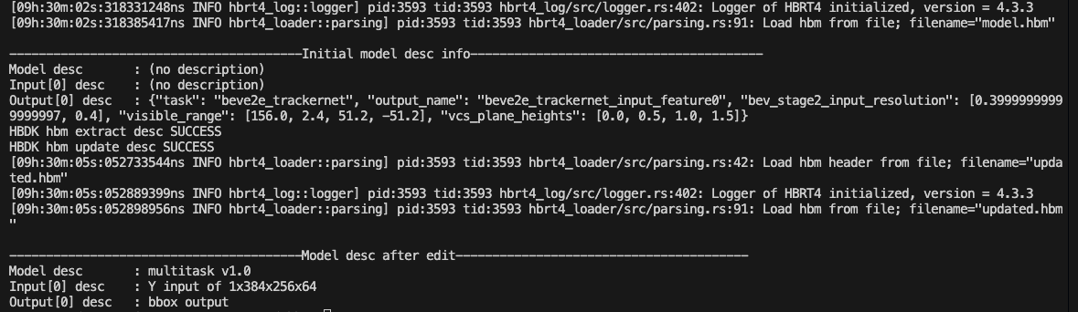 从打印的页面可以看出,hbm模型、inputs[0]、outputs[0]的desc信息已经修改完成。