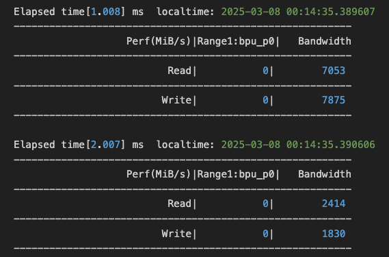 运行修改后的 hrt_model_exec 工具和系统软件里的带宽检测工具 hrut_ddr,分析日志,查看模型耗时和带宽的变化情况。