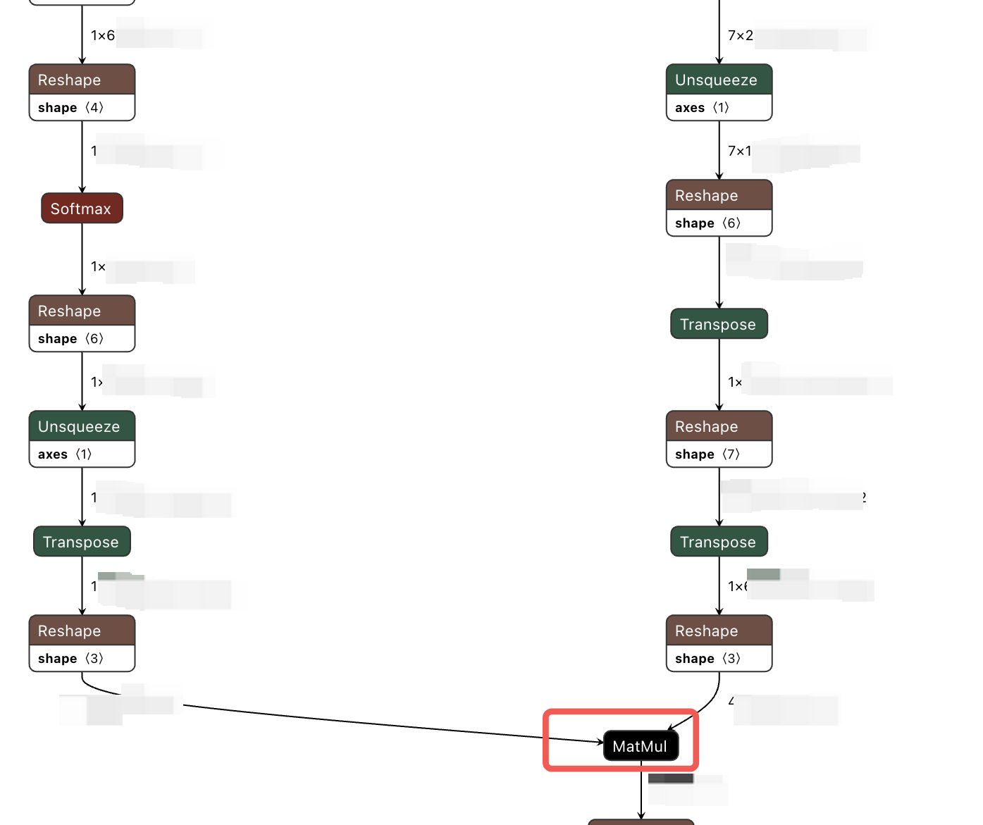 上图中,我们可以看到耗时最高的四个算子都是Matmul算子,此时我们需要结合layername到原始浮点onnx/quantized.bc中去查看这几个算子的属性。