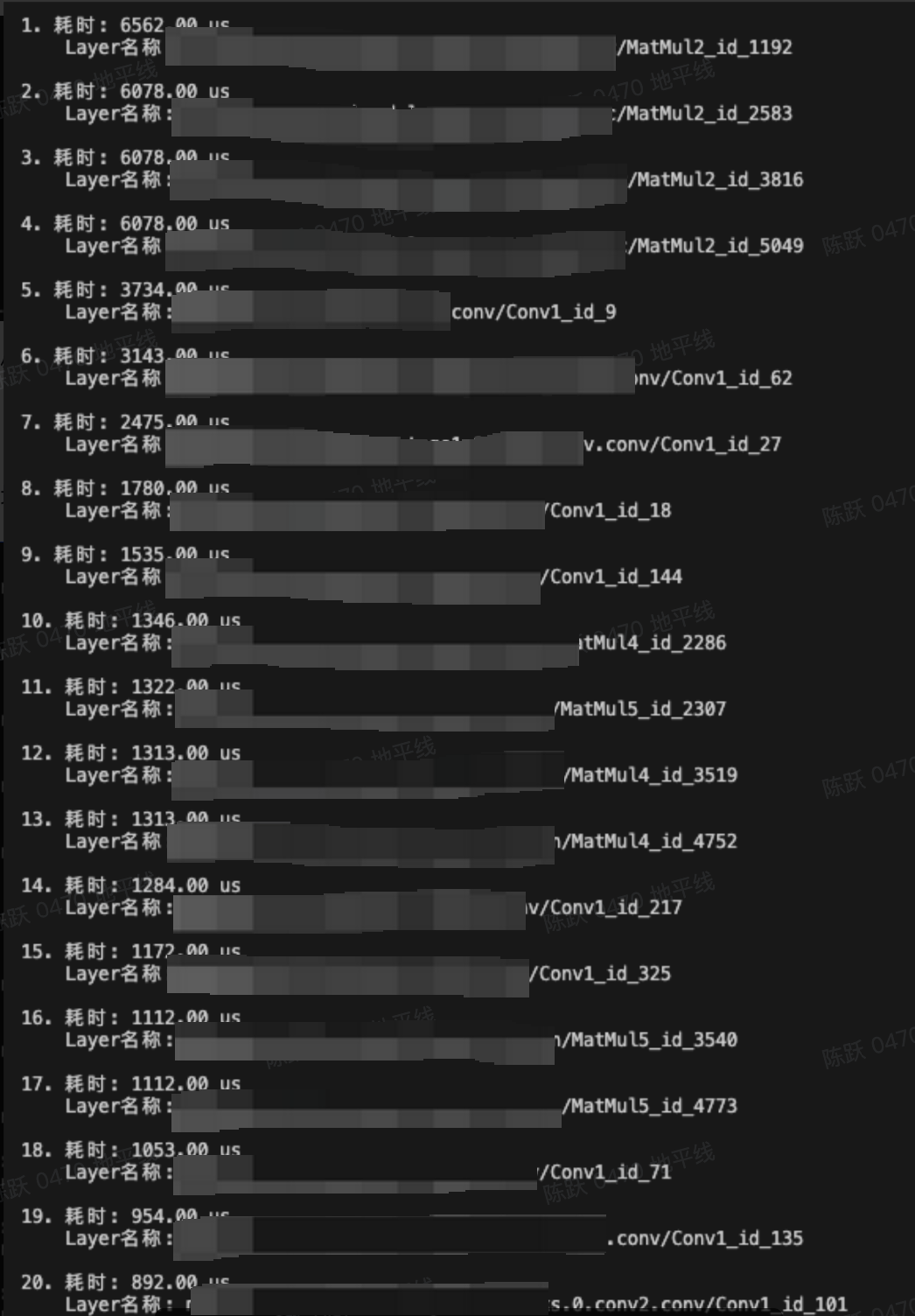 耗时排名前20的算子,这些算子是耗时的瓶颈,需要针对性分析。