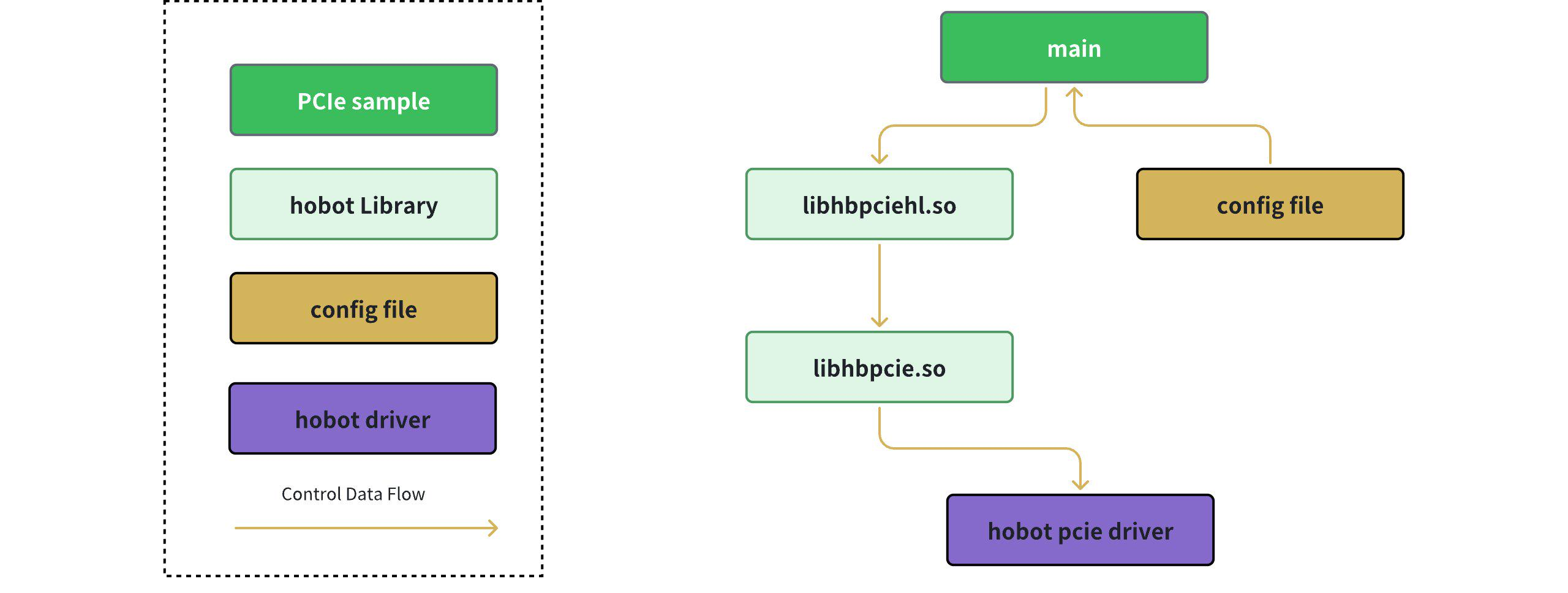 本sample基于PCIe的High Level API (libhbpciehl.so) 来实现,High Level API 基于 Low Level API(libhbpcie.so),抽象出通用的 topic / subscribe / publish 概念,屏蔽不同系列地平线芯片的硬件差异,让用户能够更加便捷的使用PCIe进行数据通信。