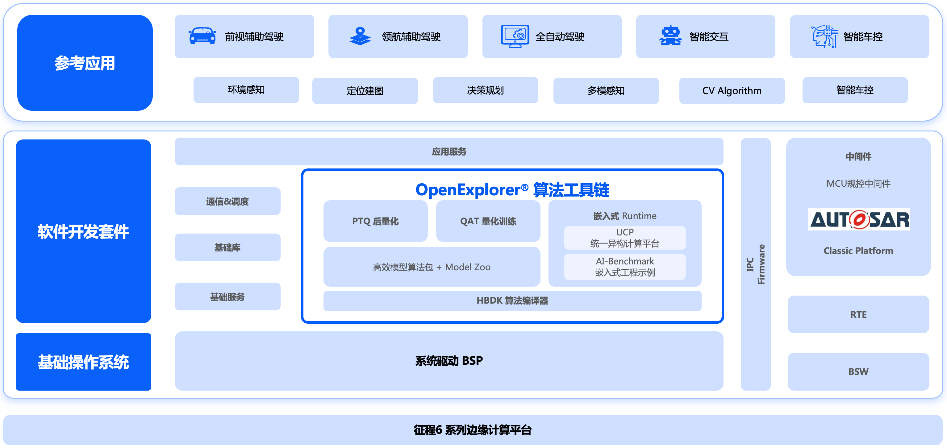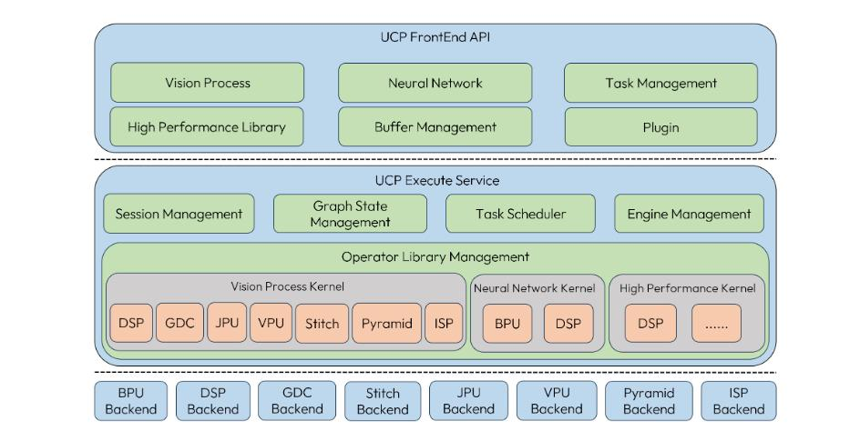 - UCP:J6 工具链统一计算平台,通过一套统一的异构编程接口实现了对 J6 计算平台相关计算资源的调用,提供视觉处理、模型推理、高性能计算库、自定义算子插件开发等功能;