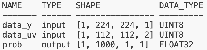 在 J6 工具链中,Pyramid 的输入 stride 为动态,Resizer 模型的 stride 和 shape 都是动态。如下为 mobilenetv1 编译后的模型信息: