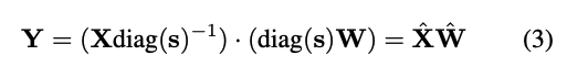 SmoothQuant通过除以逐通道平滑因子 𝐬来“平滑”激活输入。 为了保持线性层的数学等价性,相应地在weight上乘以缩放权重: