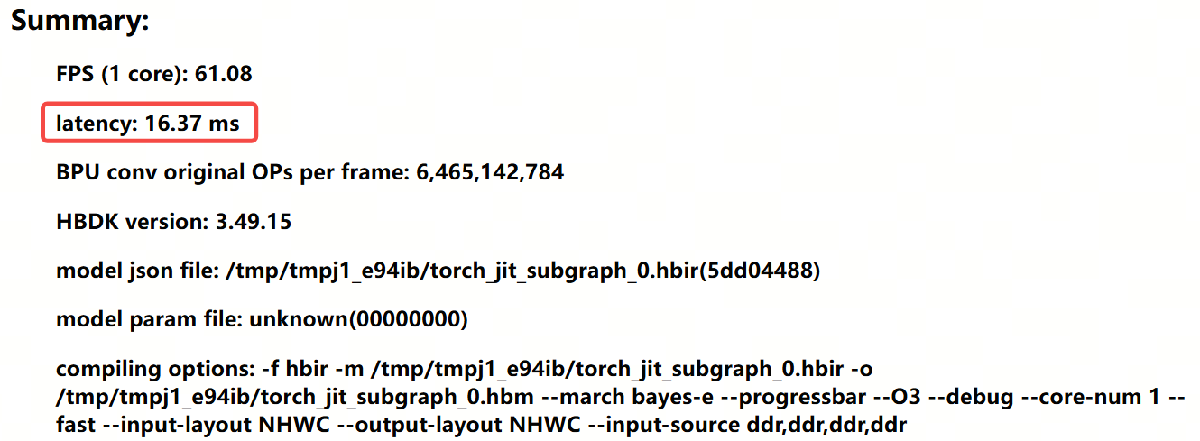 需要特别注意的是,html的算子耗时预估只体现单个算子的执行时间,实际BPU在推理模型时,会并行执行多个算子的计算指令,因此html中所有算子的累计耗时并不会等于模型的总耗时。