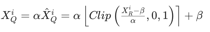 - 基于裁剪的量化:截断异常值以提升中间值精度,公式为: