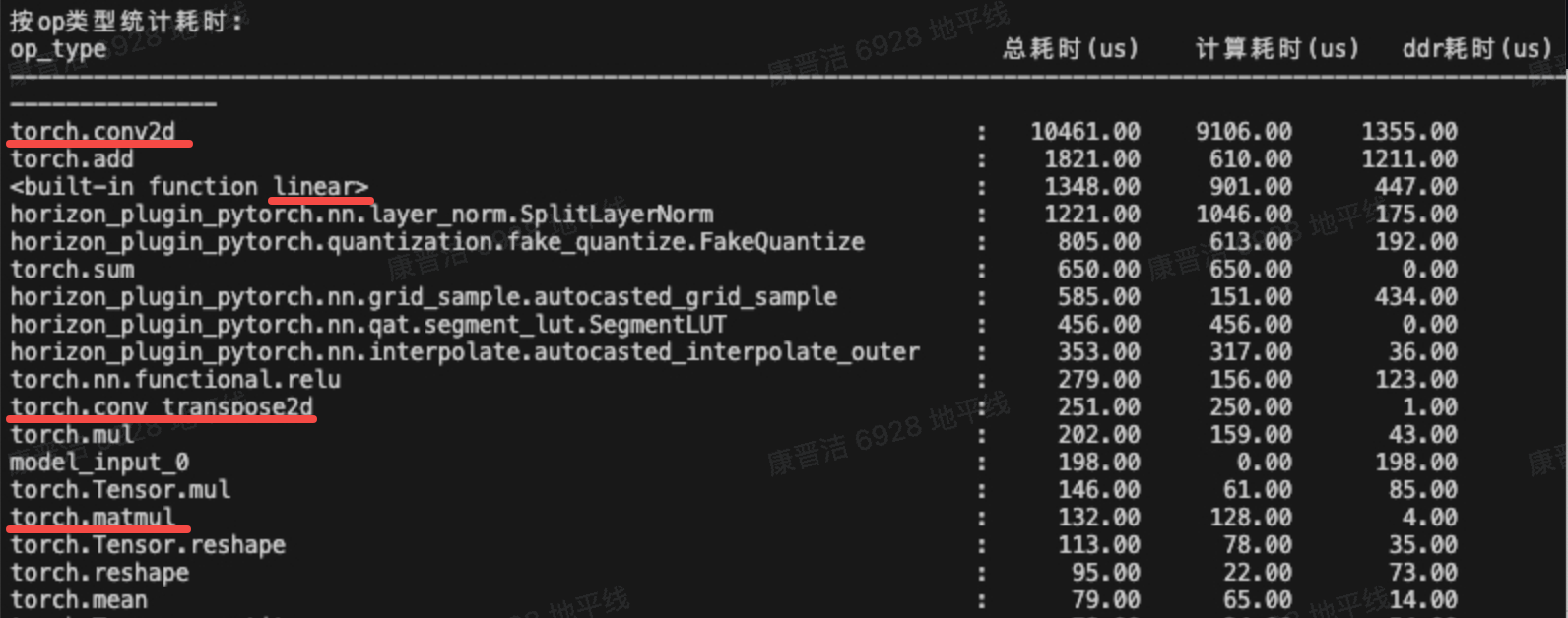 有一些shape较大的conv like算子配置高精度后延时会激增,可通过脚本中统计耗时排名靠前的算子找到对应信息,并做针对性优化。