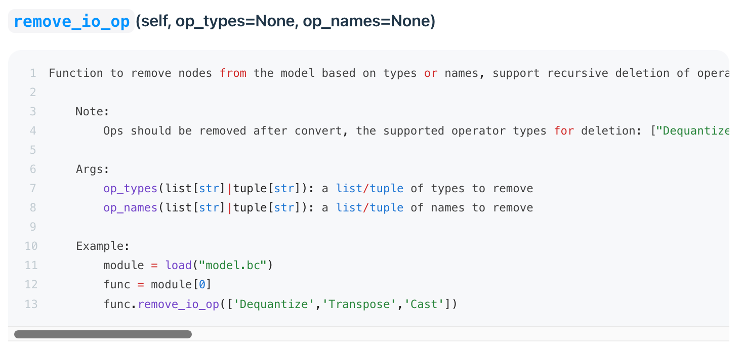 op_names:也支持指定算子名称进行移除,主要用于 PTQ 链路生成的模型,QAT 链路由于当前算子名称过长,所以实际并不实用。
