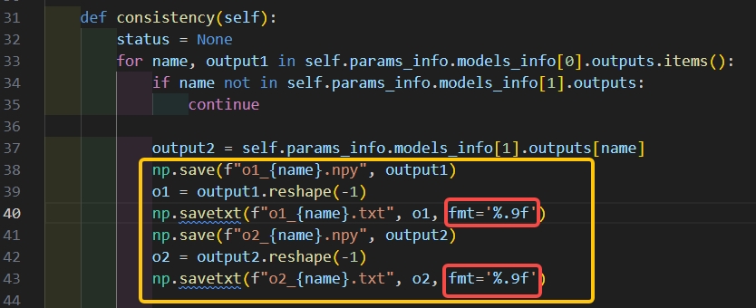 2. 修改脚本/usr/local/lib/python3.10/dist-packages/horizon_tc_ui/verifier/comparator.py如下以查看hb_verifer验证过程中两个模型的推理输出结果