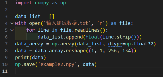 1. 使用如下脚本将你提供的测试数据转化为npy文件: example2.npy,方便在hb_verifer中使用