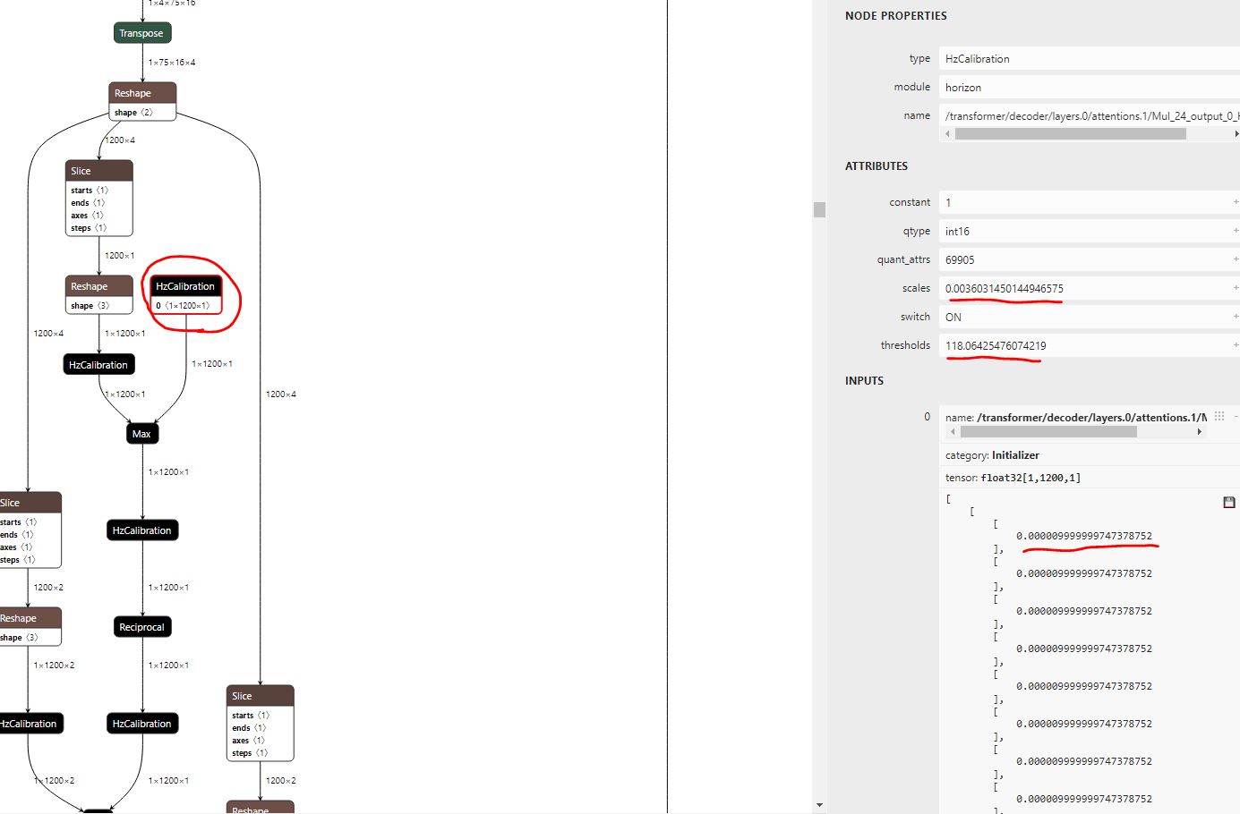 版本:J6 v3.0.22问题:激活校准节点是个常量tensor,从INPUT看数值为0.000009999999747378752,为什么得到的校准阈值是118.06425476074219,应该是 0.000009999999747378752 ?