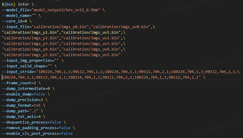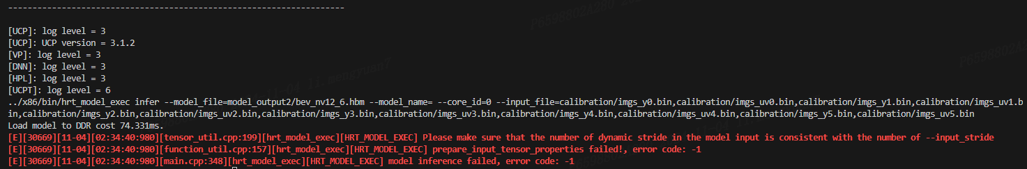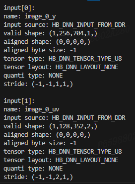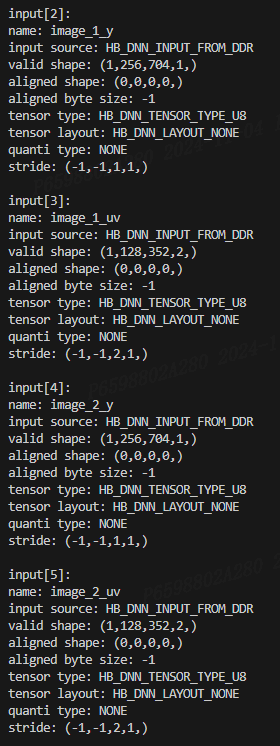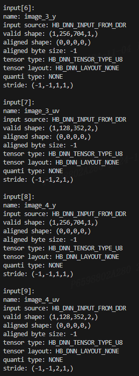 5. 问题具体描述:bev模型输入是nv12格式,共有6个y分量输入和6个uv分量输入,输入信息如下图。在使用hrt_model_exec infer指令进行模拟板端推理时,input_stride设置如图,出现了如下的报错。