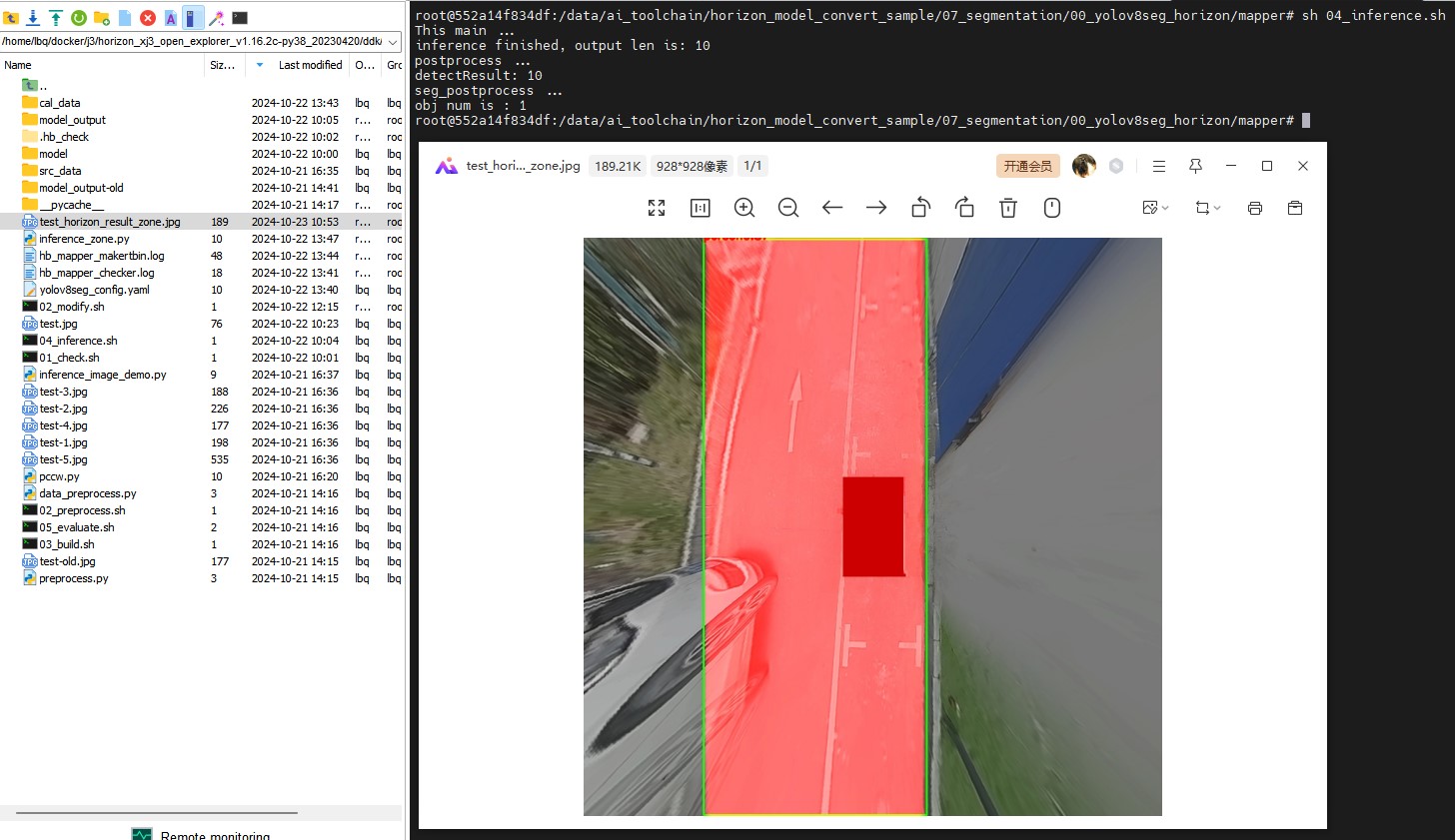 4. 问题具体描述:我想在J3部署yolov8-seg相关的代码,目前按照csdn上某位大佬的教程在docker环境中跑通了python相关的代码,如图所示,但是现在想把这部分代码和模型用于cpp部署时发现开发包下面并没有可参考的代码,在/data/ai_toolchain/horizon_runtime_sample/code也只找到mobilenet等分类检测相关的代码,请问有没有什么可以参考的资料。