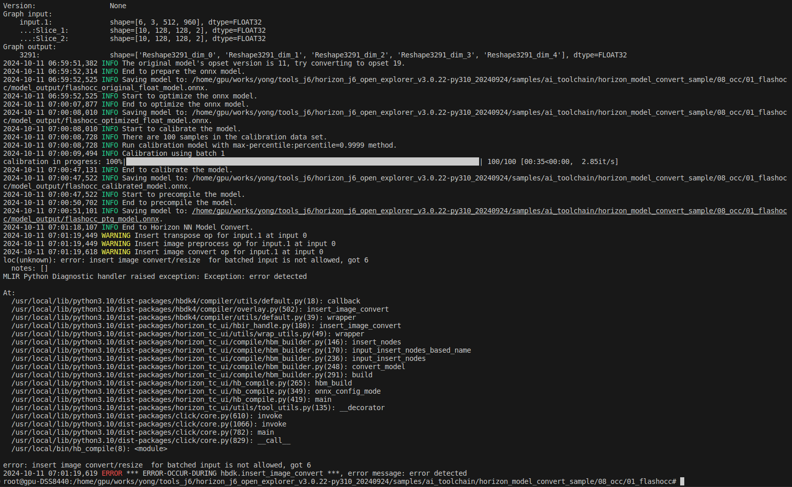 4. 问题具体描述:hb_compile --config ./flashocc_config.yaml 报错