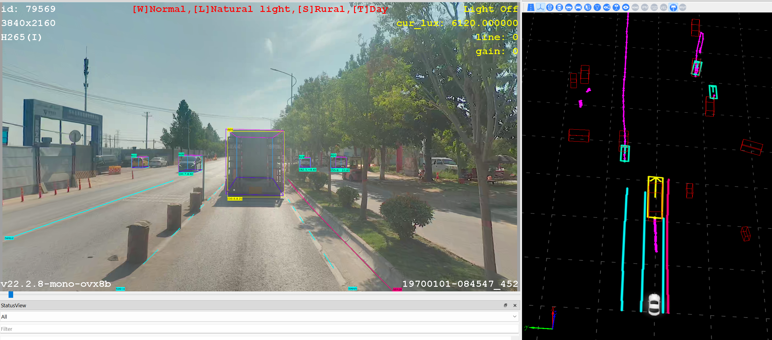 红色看起来是3D框,绿色看起来是bev框,现在猜测红色是单目3D检测的结果,绿色是在此基础上进行跟踪滤波后的结果,下游使用的也是这个绿色的框,不确定是否正确,希望能解答疑惑,感谢