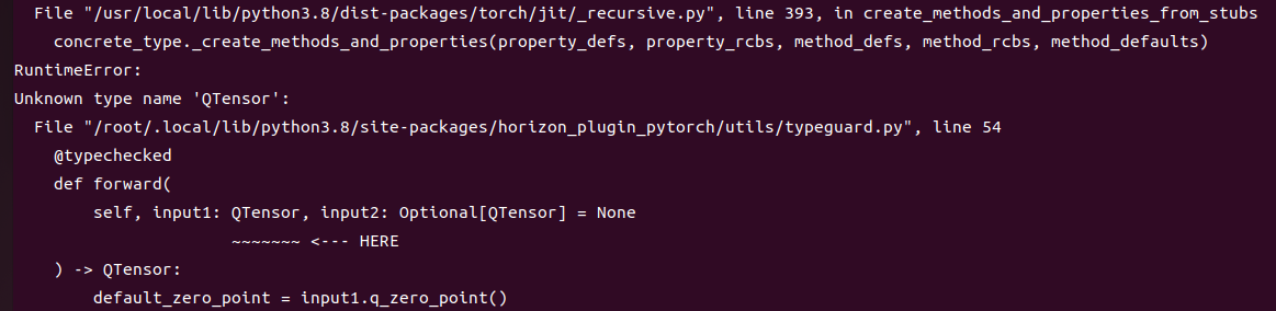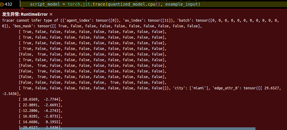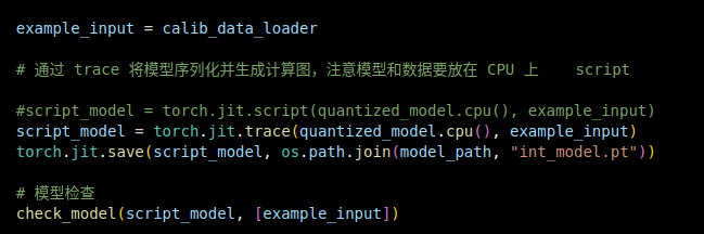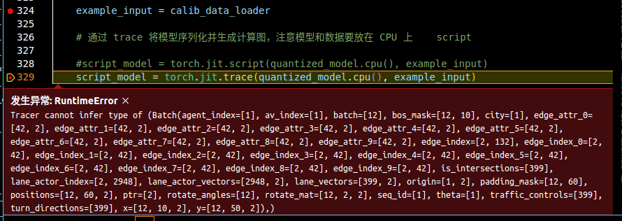 J5 J5_OE_1.1.741、我们根据算法工具链示例进行模型部署的第一步(模型检查)报了如下错误:我在修改了torch.jit.trace为torch.jit.script后报了如下错误:我们的代码如下所示:请问我们该如何修改呢?