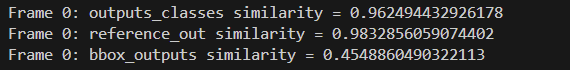 4个输出tensor中,两个tensor相似度高,一个tensor相似度低