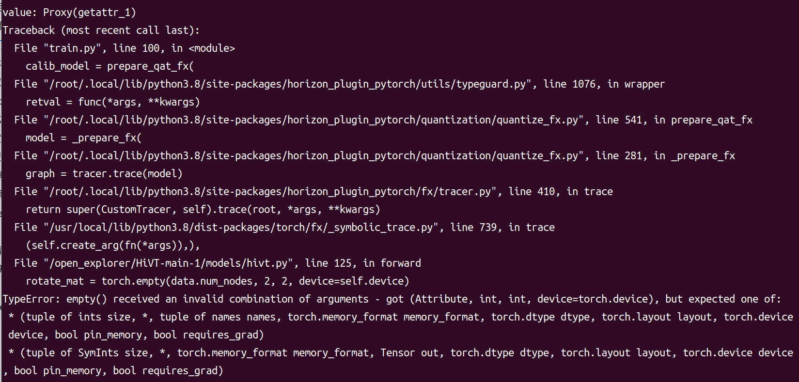 你好,从错误看是torch.empty fx后的问题,以下两个方法你可以尝试: