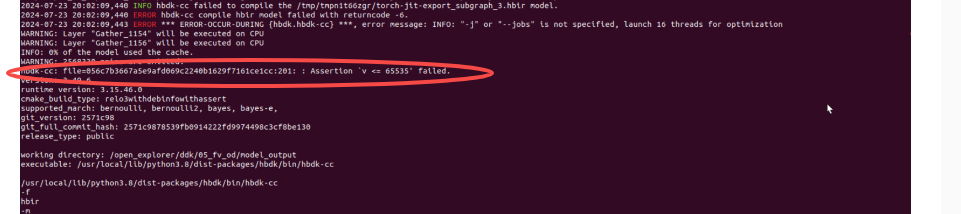 可能模型中有cpu节点存在,所以被拆分成多个子图,前两个子图编译如上图,一切正常,编译第三个子图时报错,看不出错误原因: