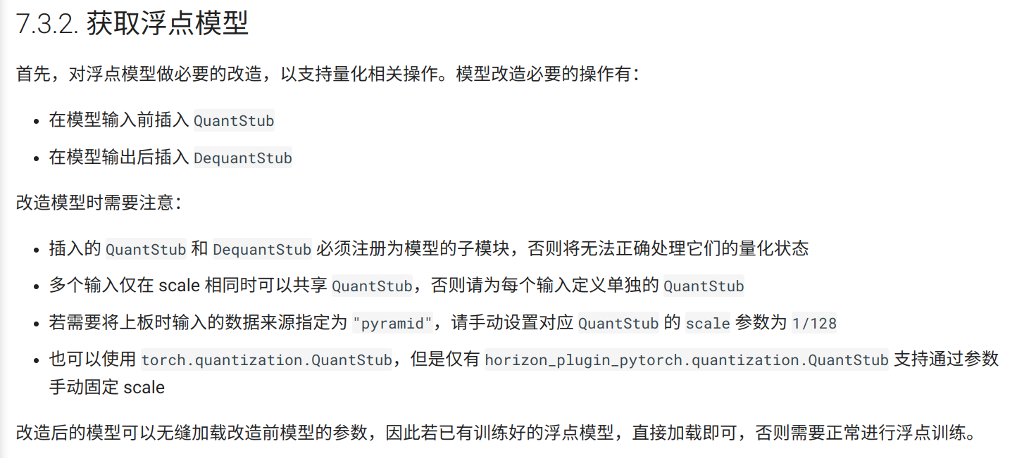 J5 J5_OE_1.1.74 算法工具链 7.3.2获取浮点模型,中提到可以直接加载训练好的模型,请问有加载示例吗?加载后如何插入QuantStub和DequantStub?