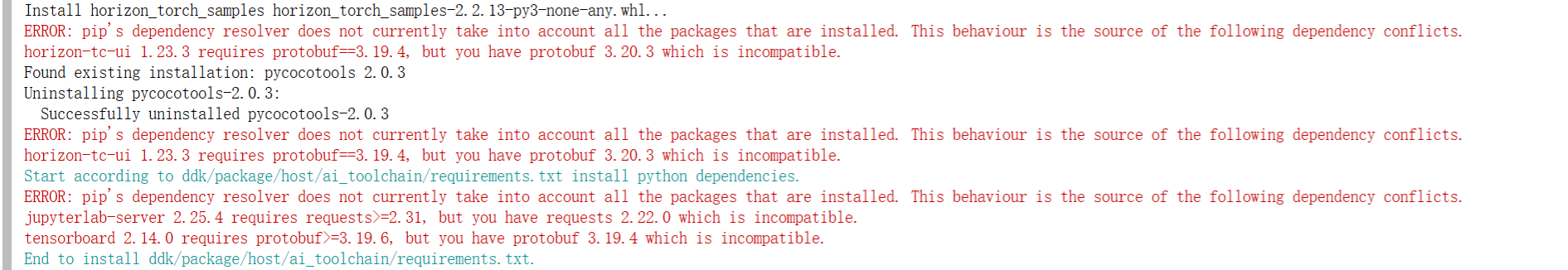 horizon-tc-ui 1.23.3 requires protobuf==3.19.4, but you have protobuf 3.20.3 which is incompatible.