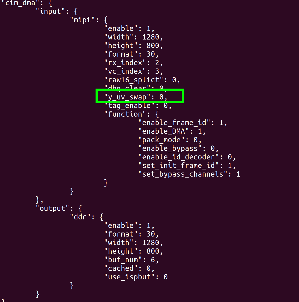 在J5中用于配置是uyvy相机还是yuyv相机,如果配置不对,颜色会偏绿。 比如原本是yuyv的相机,更换成uyvy固件之后,颜色偏绿,但配置了这个字段之后便可正常