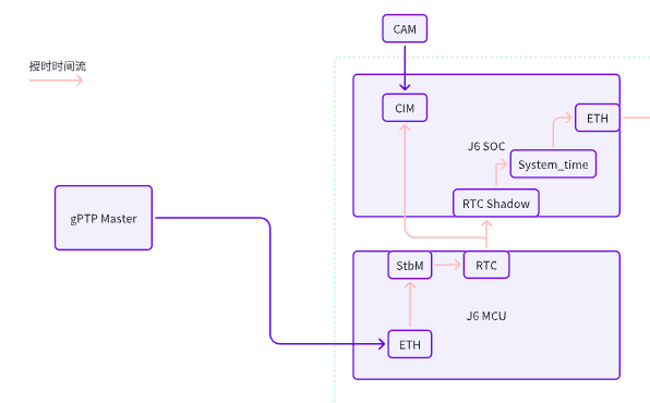 外部授时源通过gptp协议给MCU PHC同步,并同时将PHC时间同步到MCU侧RTC,Acore侧通过RTC_shadow(与MCU RTC硬件同步),读取时间戳同步给系统时间和PHC时间,CAMSYS、等可直接通过RTC获取时间戳,Radar直接在MCU侧通过MCU CanTsync时间同步