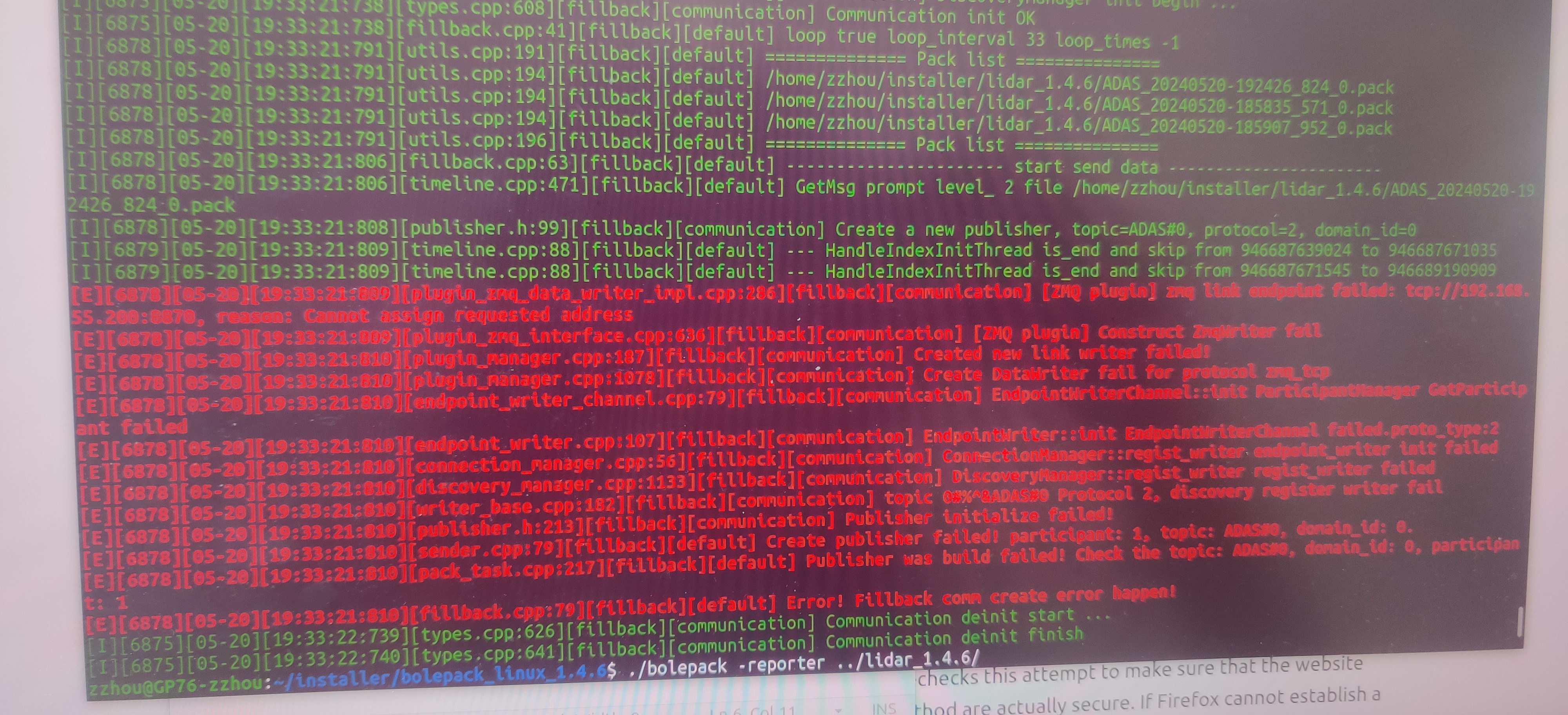 在将topicname改成地平线可识别的“robosense”后重新录制了激光雷达pack包,并且转成了bag文件,但是在我准备把bag文件转成一帧一帧的pcd文件后出现了问题: