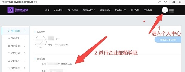 邀请验证企业邮箱:进入个人中心,验证企业邮箱。