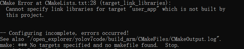 我按照工具链手册中的9.1.4 工程编译和运行 中的步骤进行编译,报错如下: