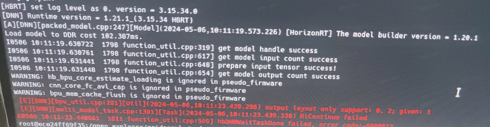 4. 问题描述: 使用PTQ方式量化模型生成混合异构模型,板端使用hrt_model_exec model_info 查看模型信息是没有问题的,但是在使用hrt_model_exec perf就出现了报错,查看输出layout也是NCHW,这个需要怎么解决?