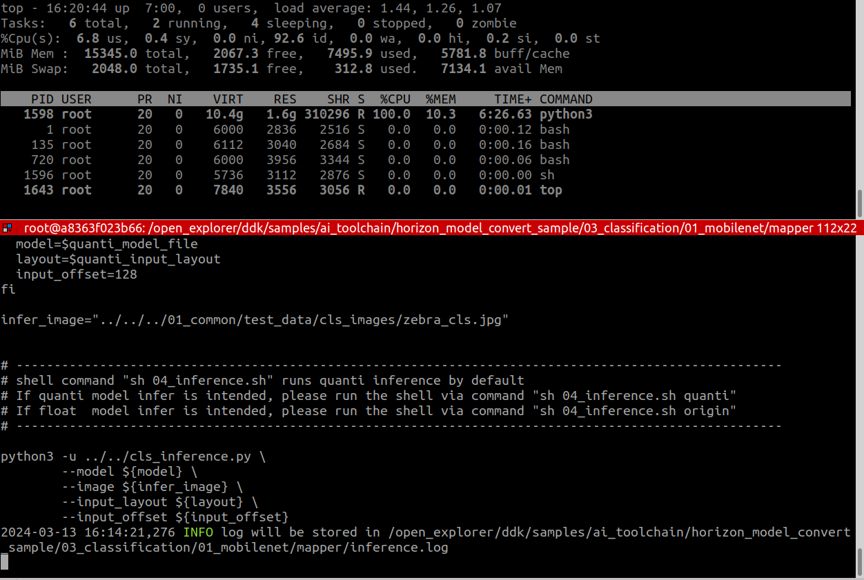 运行的代码路径:/open_explorer/ddk/samples/ai_toolchain/horizon_model_convert_sample/03_classification/01_mobilenet/mapper# sh 04_inference.sh
