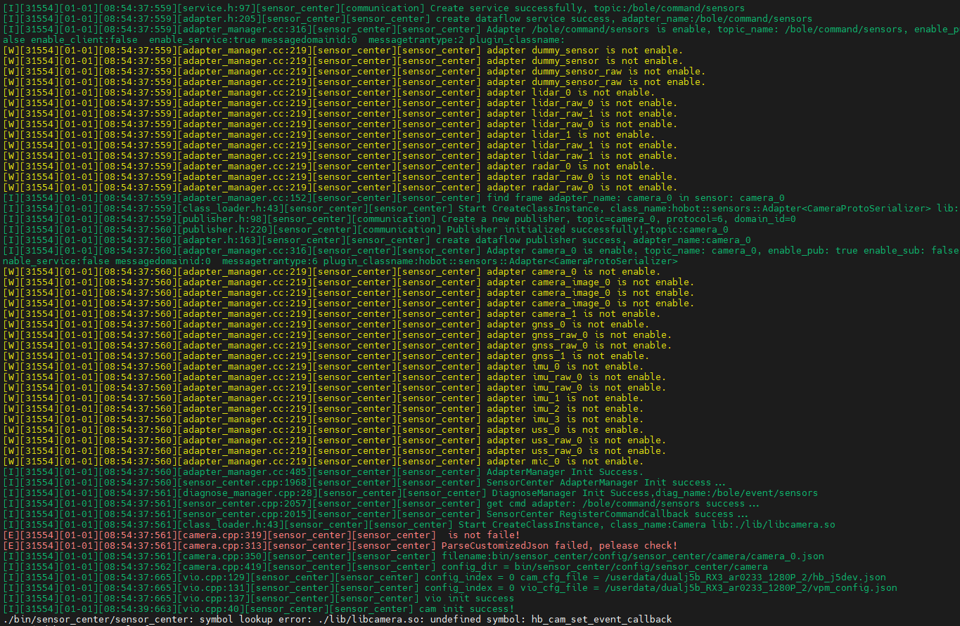 我们执行的是SDK-1.5.6编译出来的sensor_center可执行文件,通过说明文档配置了sensor_global.json、adapter.json、communication.json,camera_0.json,摄像头用的是森云的ar0233。