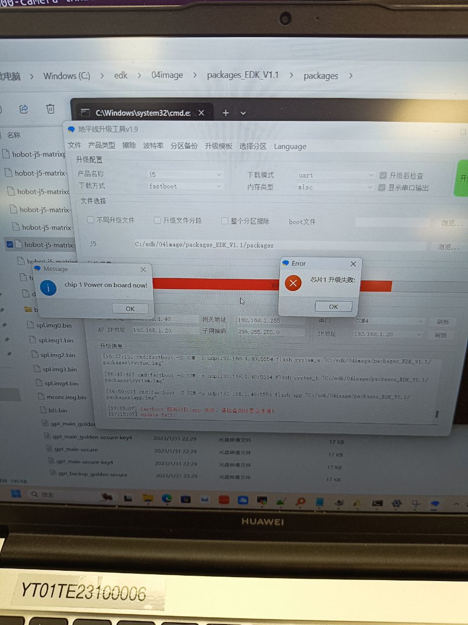 问题描述:用地平线升级工具v1.9升级J5 EDK失败