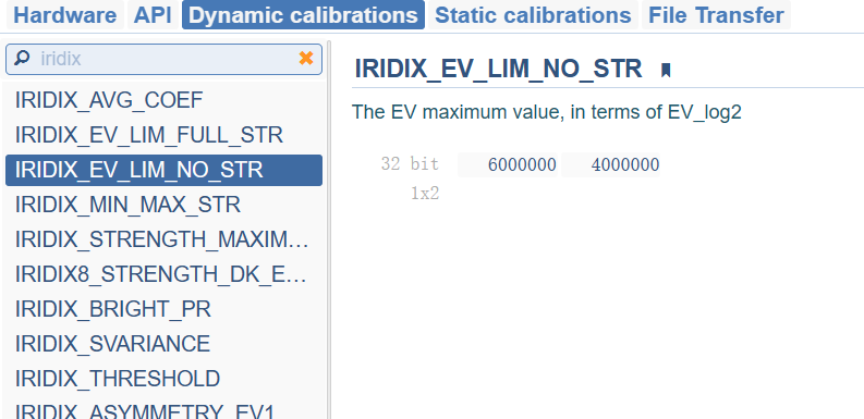 在资料里是说ev低于第一个值时,iridix strength会设为Iridix_min_max_str,但是在实际调试过程中发现我调的越高,暗处整体亮度越亮,可我的Iridix_min_max_str没有变动,且当前ev是450万左右,no_str[0]从600万到650万按道理说应该是不变的。第二个值也是同样的,感觉和资料里说的不太匹配。