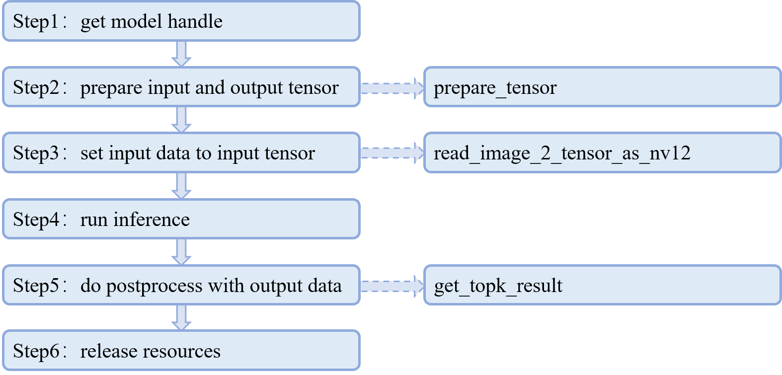 主函数中的最后一步Step6,就是一些收尾工作,依次释放任务句柄,释放输入输出申请的内存空间,最后释放模型句柄。到这里,整个快速上手的代码就解读完成了。