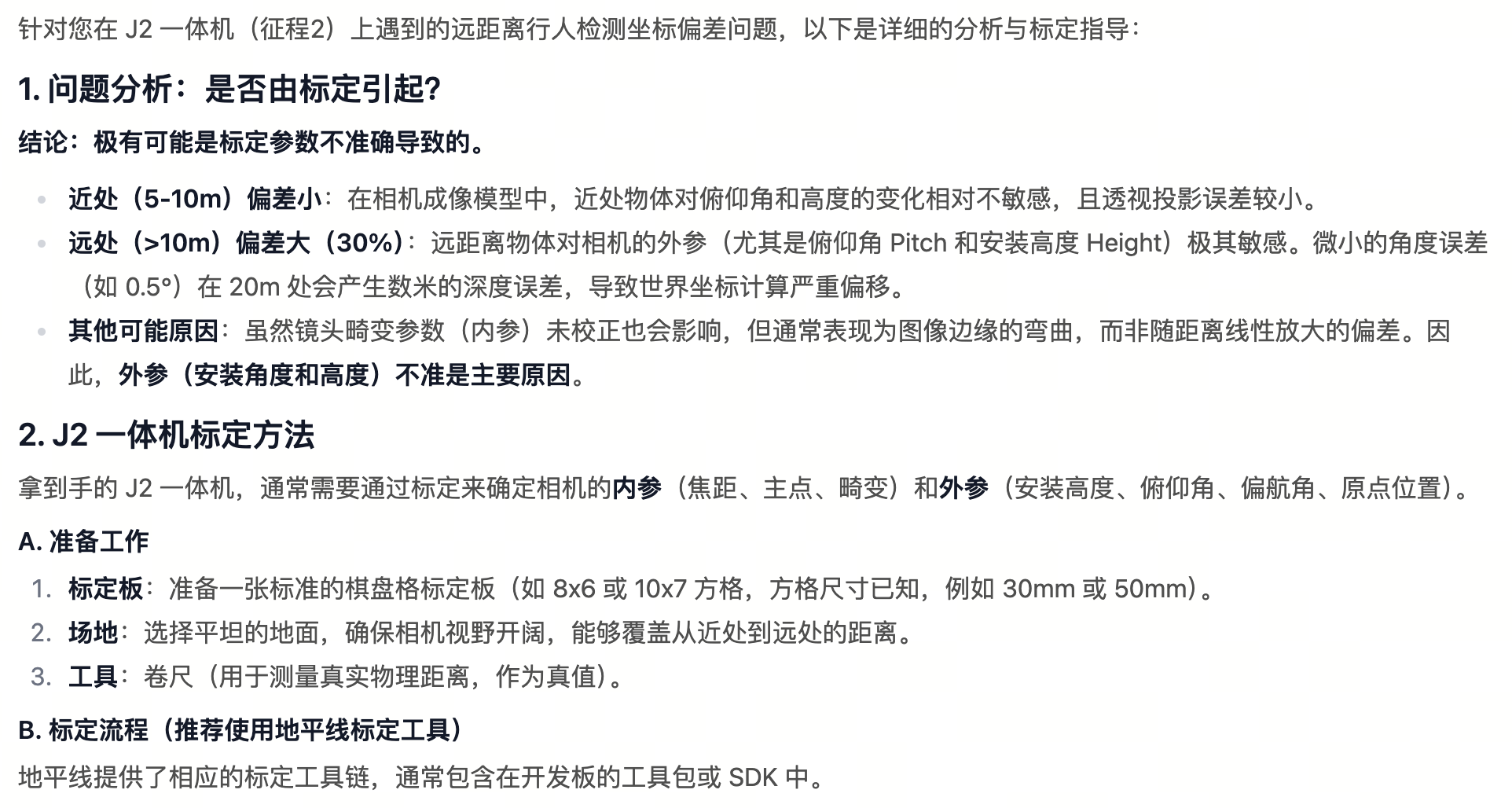 这种情况是不是J2一体机没有经过严格标定产生的?拿到手的J2一体机,该怎么标定来确定安装的高度、安装角度、原点位置等信息?