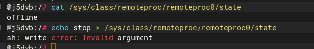 echo start > /sys/class/remoteproc/remoteproc0/stateecho stop > /sys/class/remoteproc/remoteproc0/state无法通过设备结点对其他核做生命周期管理