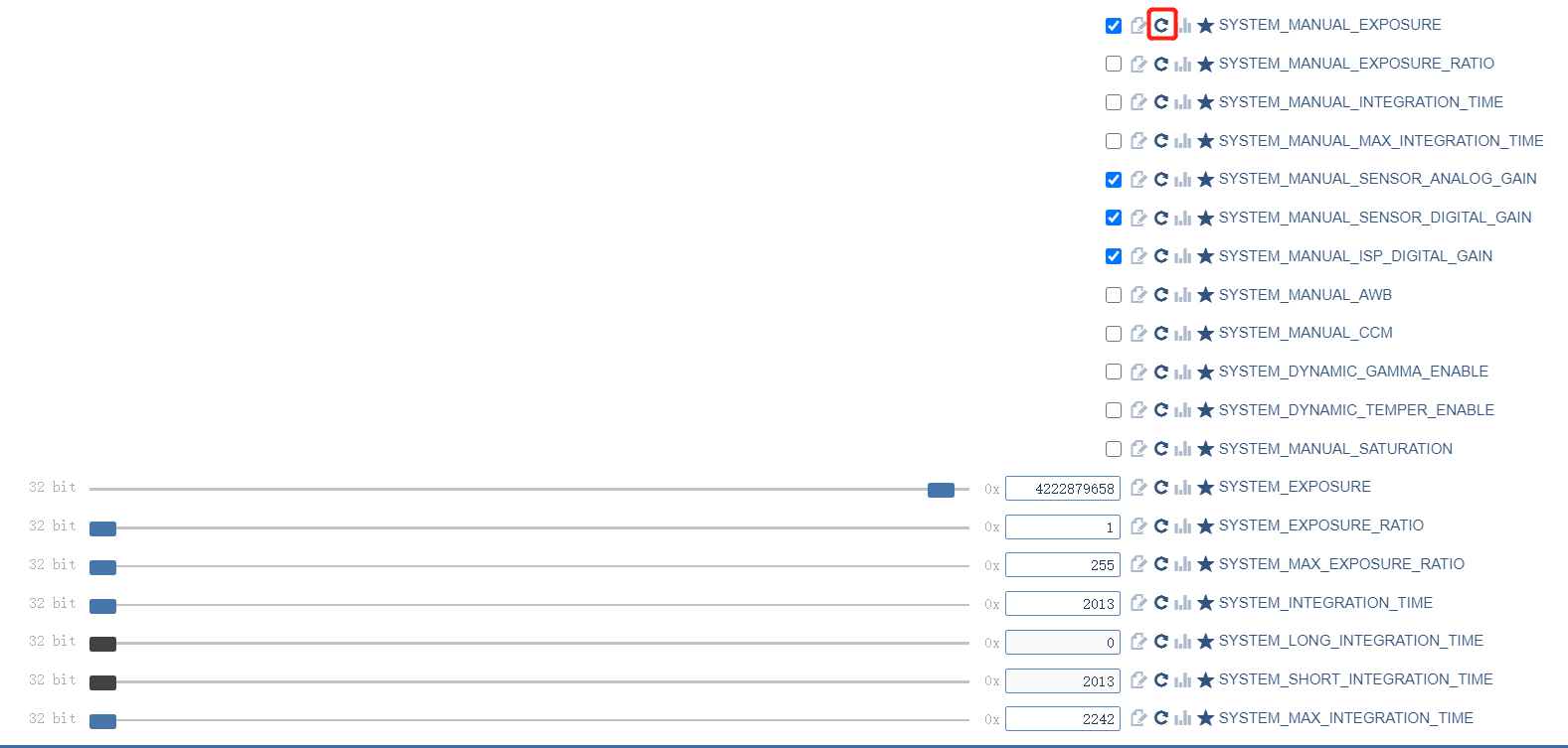 3、修改手动曝光时只需要勾选MANUAL模式,再拉动下面对应的滑条就可以了吗,为什么有时候刷新下网页,滑条值会复原?