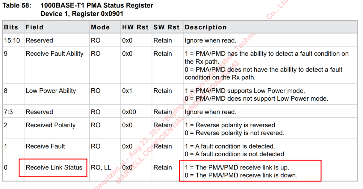 使用的PHY芯片是88q2112,看网上说读状态寄存器一般来讲正常的值为0x796d。