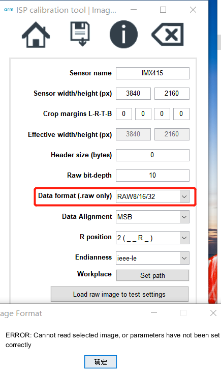 如下图,设置好各项参数后,Load进RAW图后出现报错提示问题1、如何重新配置才可以打开RAW图(见附件)问题2、如果RAW图是RAW10、RAW12以及其他格式,红框部分Data format (.raw only) 要如何选择