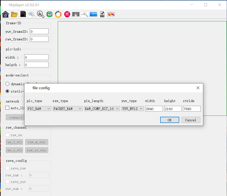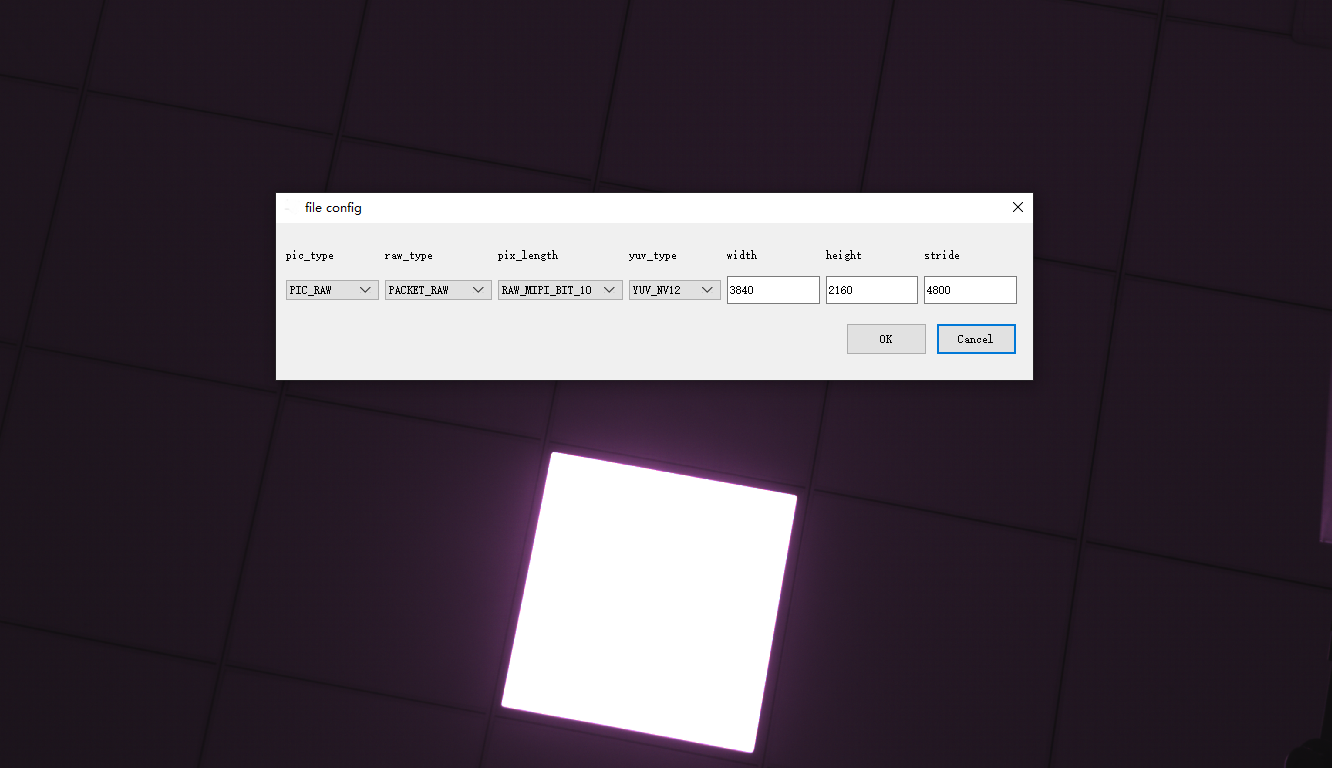 验证过程:不管是把RAW图格式切换为UNPACKET_RAW、PACKET_RAW,以及把对应的pix_length也切换为RAW_COMP_BIT_10、RAW_MIPI_BIT_10,各种组合设置都不能成功打开RAW图。