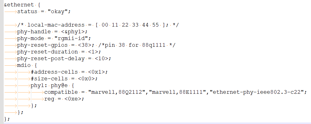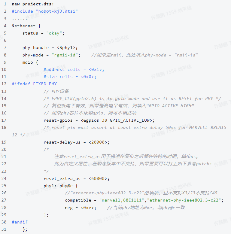 内核下同理,也可直接引用hobot-xj3.dtsi中定义的gmac节点,然后添加对应的属性即可