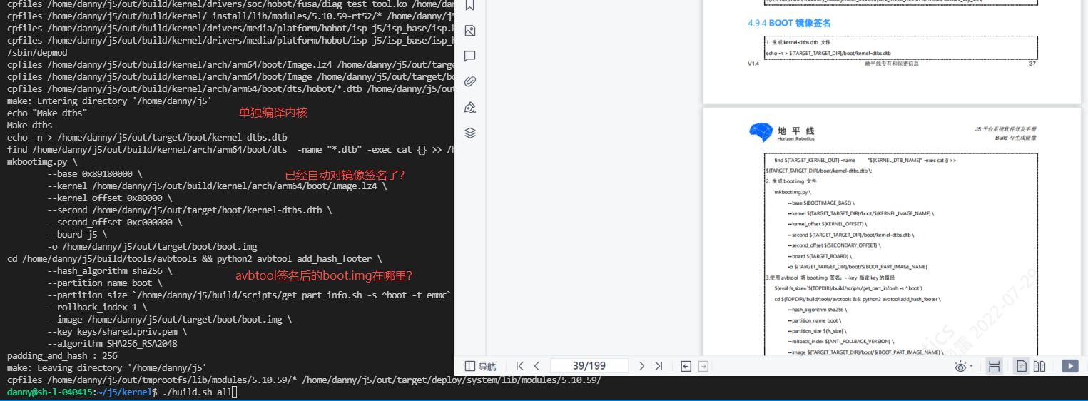按照J5编译文档说明,单独编译内核后,需要对镜像签名。
