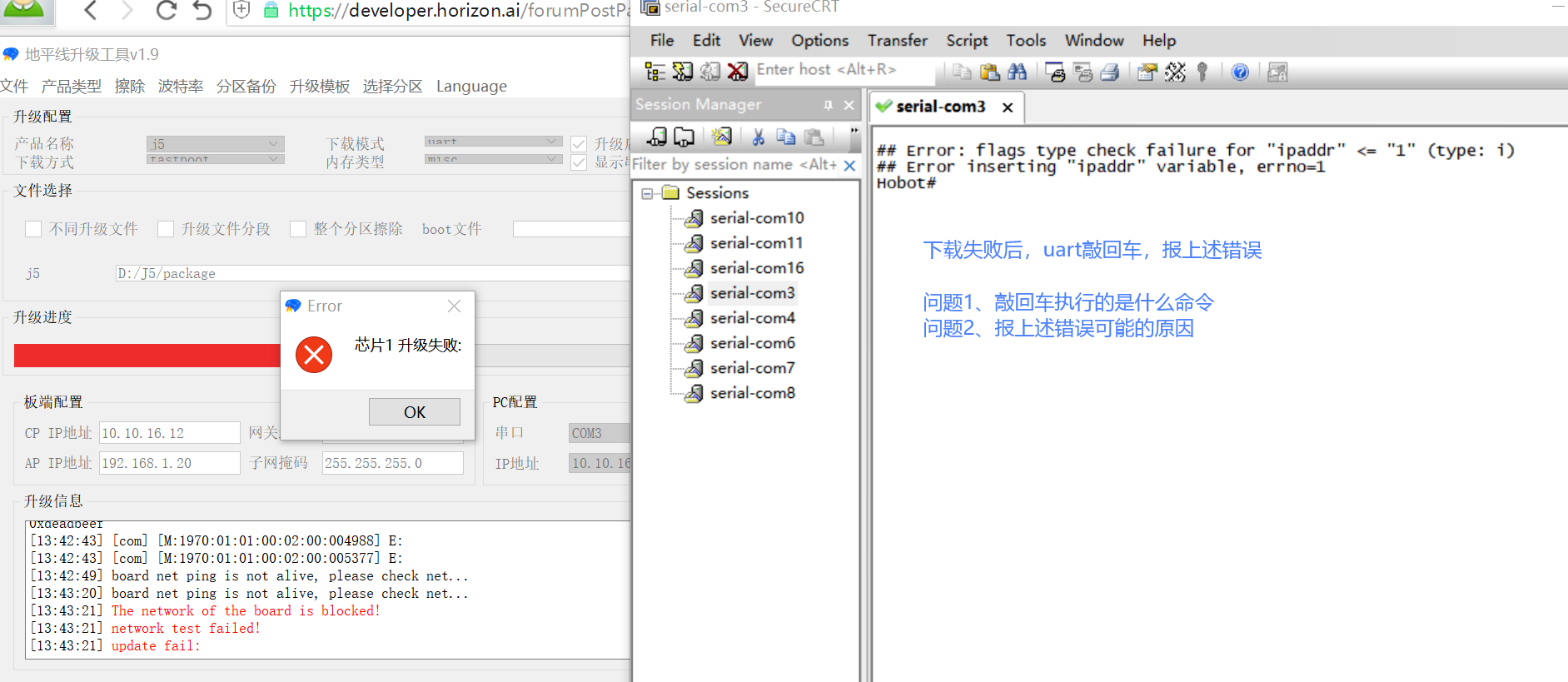 您好:出现您这种问题,一般有如下排查方式:可以手动进入uboot下ping一下网络,排除一下工具问题,看是不是网线忘接或者接触不良检查一下PC端和板端的IP设置是否正确,是否在同一网段可能需要关闭本机的防火墙设置;目前发现部分网线或其他硬件环境存在问题,自协商时网络不通,需要调整到100M全双工,操作可参考如下谢谢