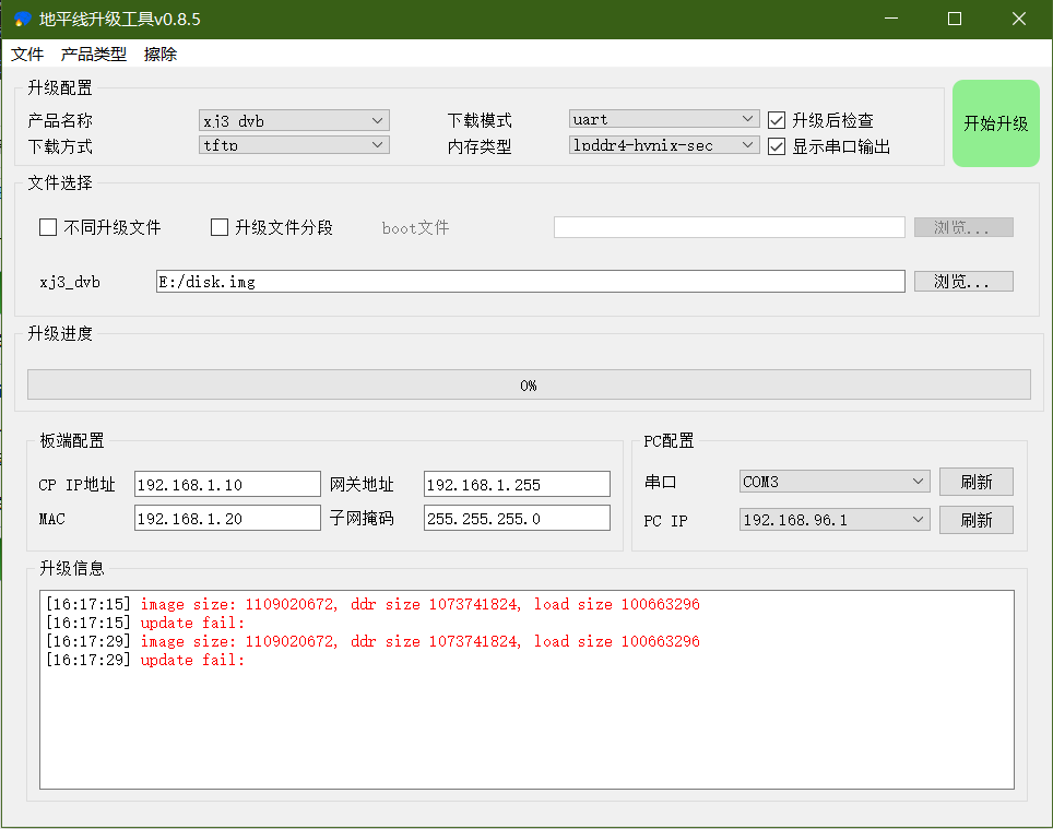 J3 DVB BSP0917修改分区表后,使用hbupdatev0.8.5升级报错