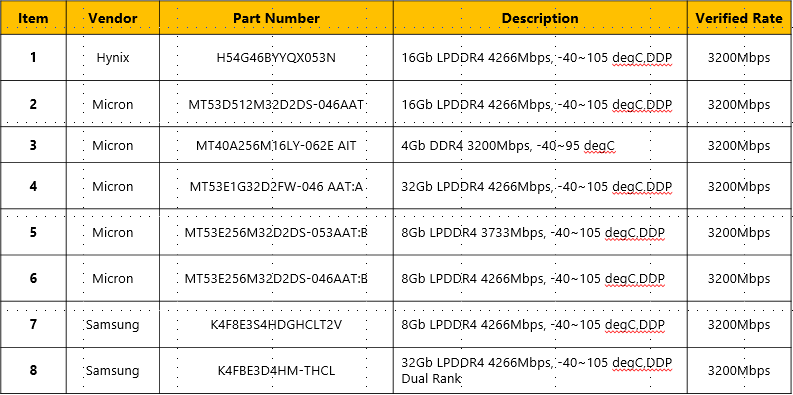 J3 已经适配的DDR列表如下