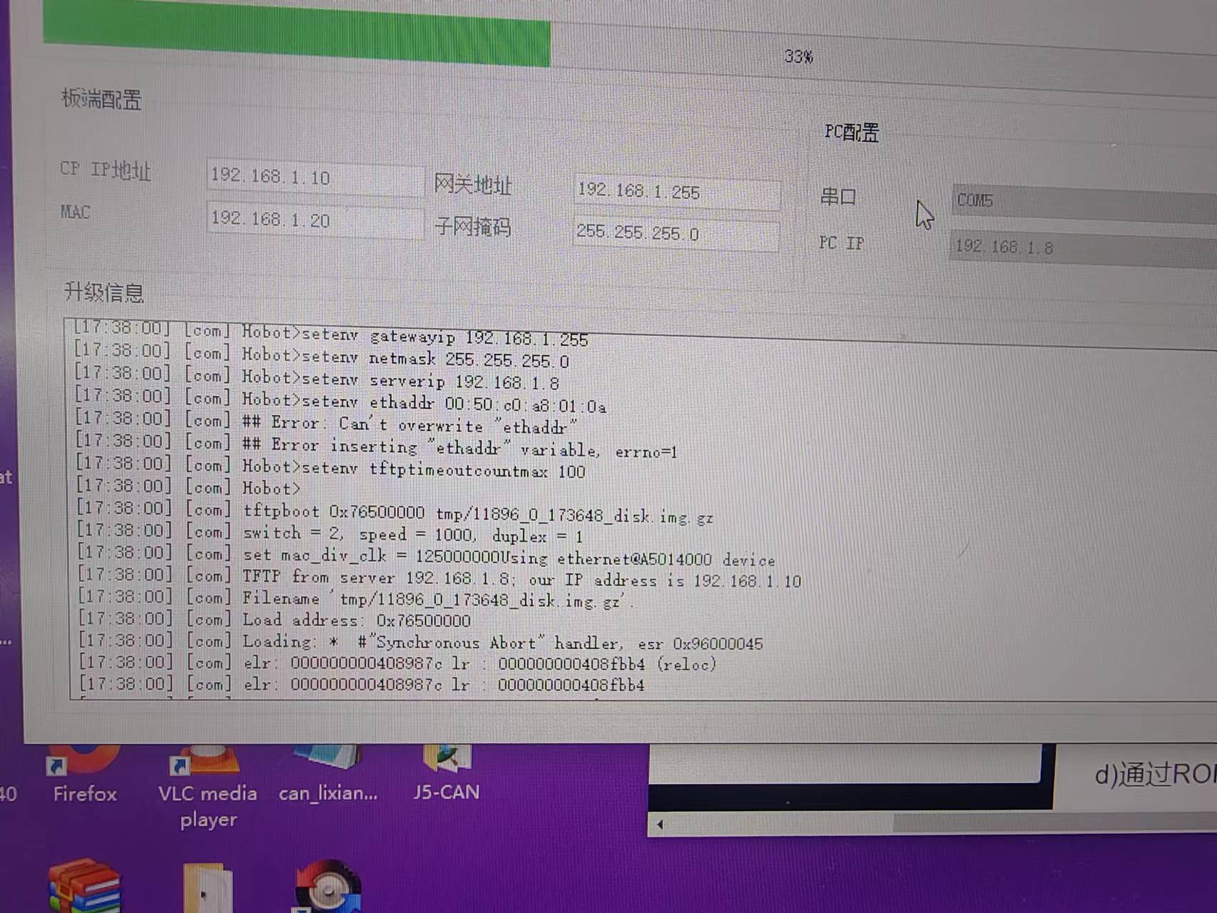 1、uart+tftp刷机,刷机到35%时报tftp异常,工具停止。但是用串口登录,设置ip,用tftp32.exe tftp是可以继续升级的。如附件