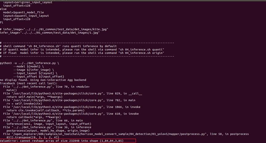 在单张图片推理过程中报错,具体报错内容:查看别人帖子说需要修改后处理中output的reshape,更改依照01check中输出的output的reshape,但是执行check没有output的信息,无法修改。